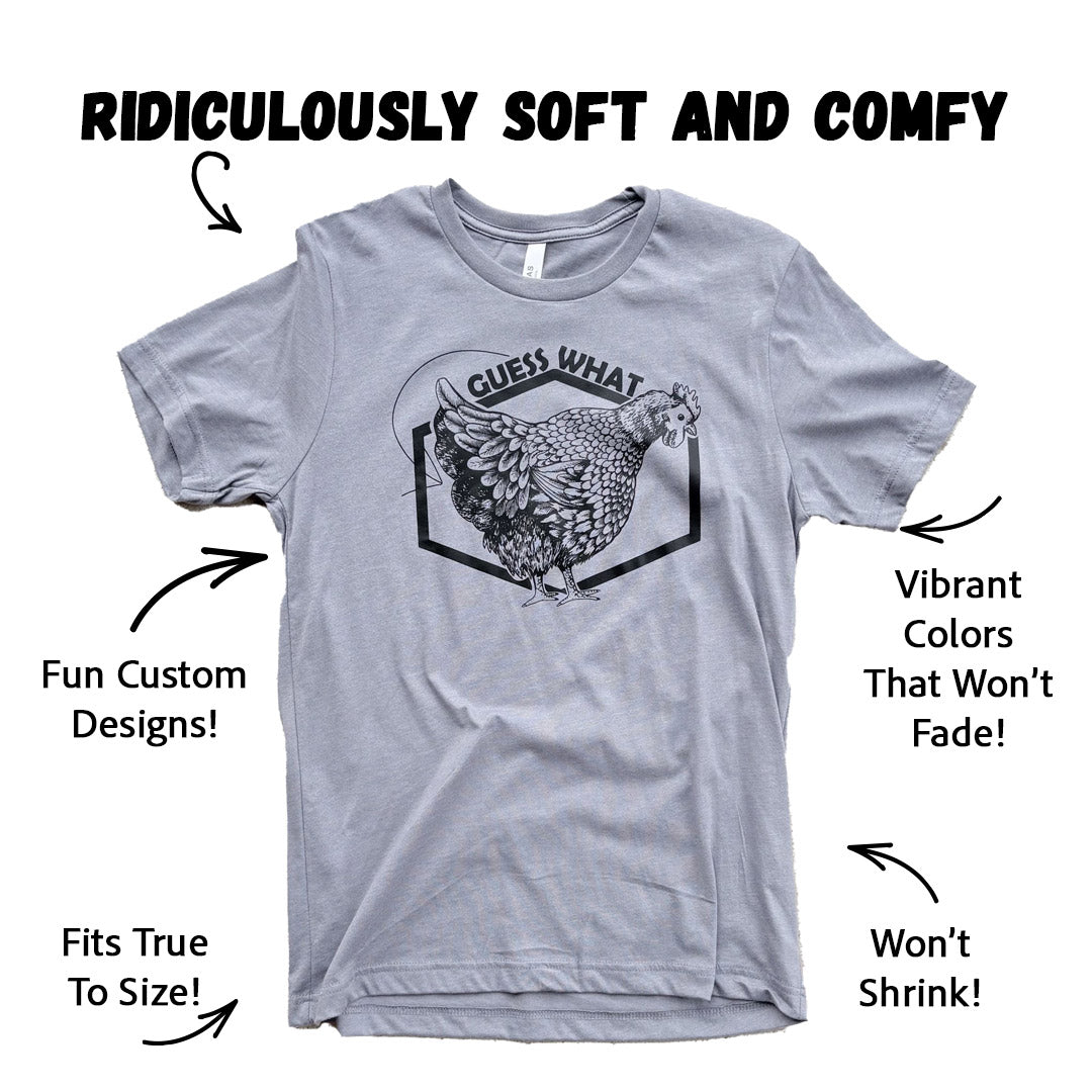 Ahh..the classic joke when you think of chickens. Now on a shirt for you to share with everyone.